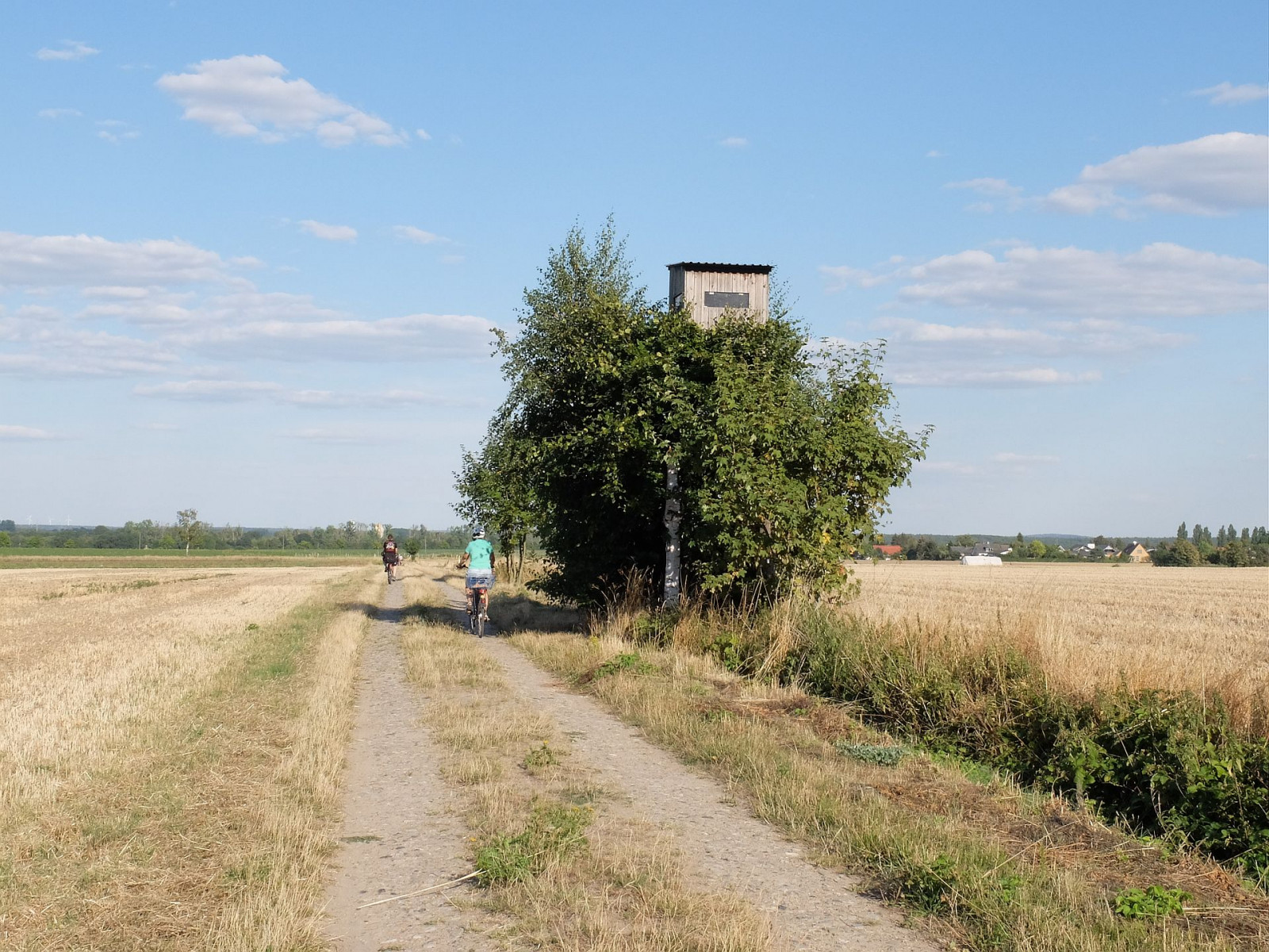 Der Weg dahin sollte kein leichter sein, führte er doch zu einem großen Anteil über unbefestigte Wege, durch die Wälder der Umgebung. Das Schöne daran war, dass diese Wege Schatten boten. So konnten wir bei angenehmen Temperaturen durch den Gegend radeln und uns den warmen Sommerwind (er blies aus östlichen Richtungen) um die Nase wehen lassen.
