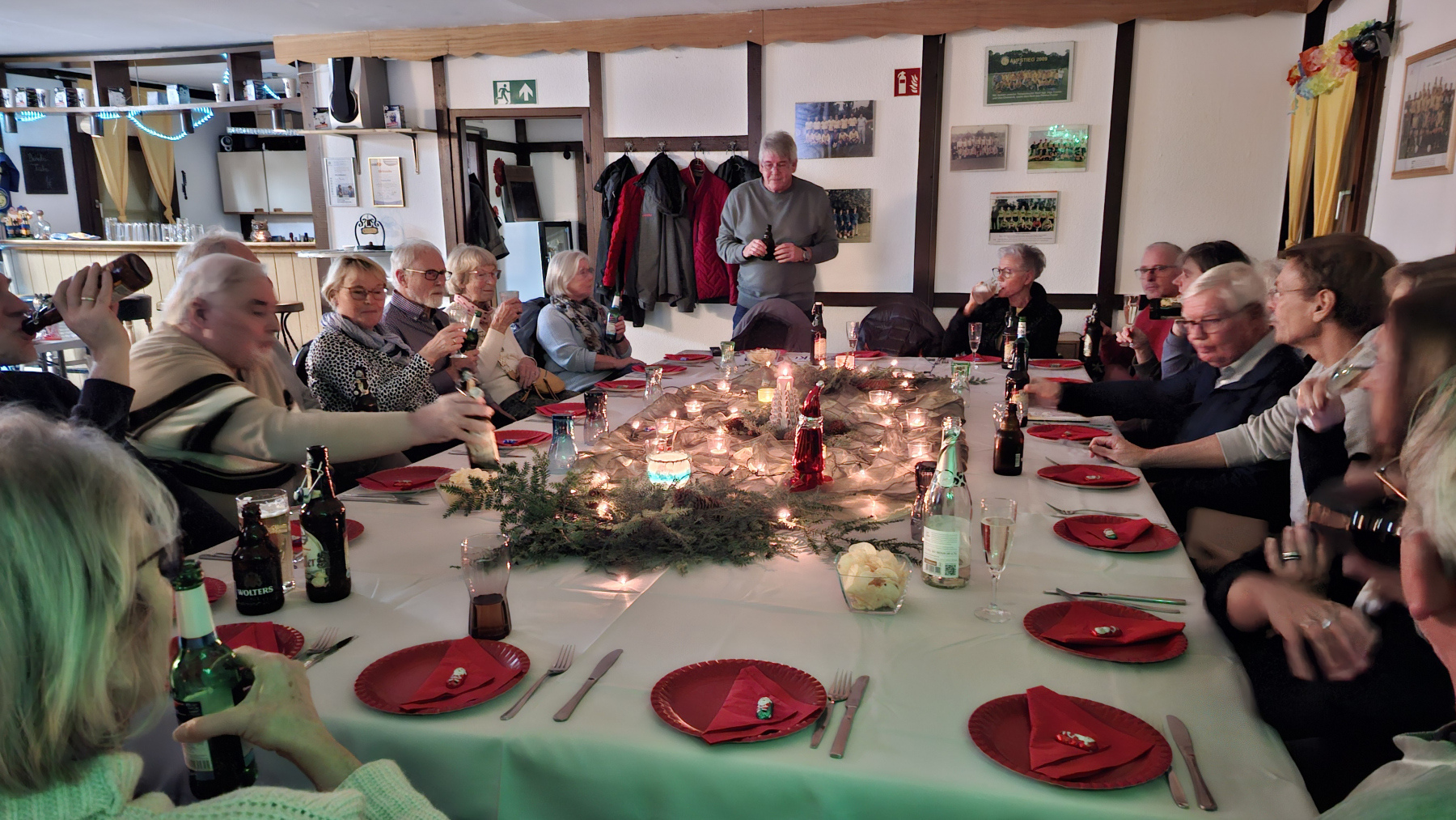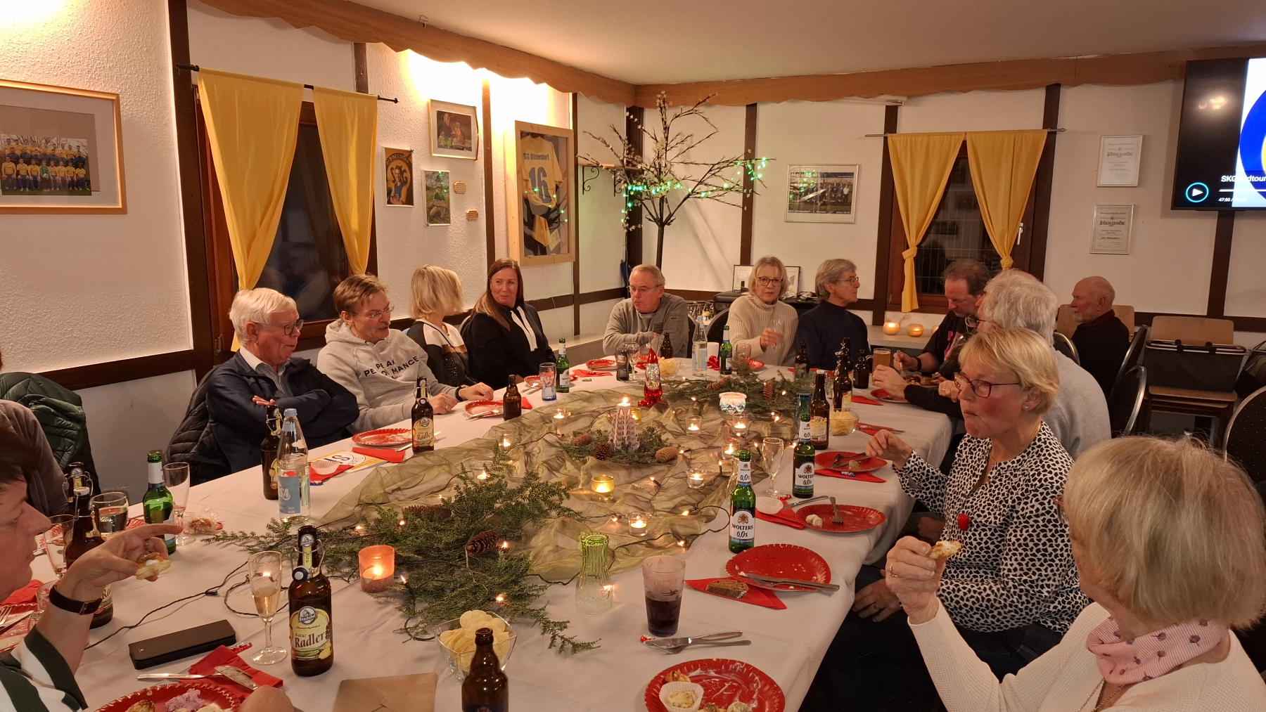 Dieses Jahr hatten wir uns vorgenommen, das Jahr 2025 mit einer Filmvorführung zu unseren Aktivitäten und einem Überraschungsbuffet ausklingen zu lassen. Es stellte sich nur die Frage der Räumlichkeiten, da wir ja keine Hallenzeiten haben. Bernd, unser Vorsitzender, hatte die Idee, die Feier doch im Sportheim am Fußballplatz durchzuführen.