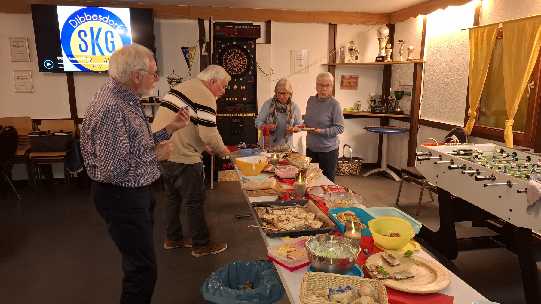 Nun kam das nächste Highlight, kurz vor 19 Uhr konnte Uwe das Überraschungsbuffet eröffnen. Danke an alle Mitglieder, die ein tolles Buffet gezaubert haben. Soweit ich es beobachtet habe, waren alle mindestens zweimal am Buffet. Es hat toll geschmeckt und war sehr abwechslungsreich.