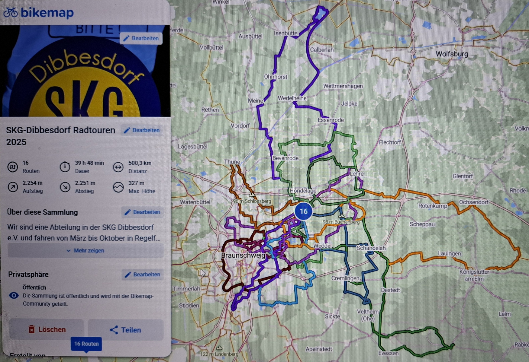 2025 haben 16 Touren stattgefunden, eine Tour ist im Juni dem Unwetter zum Opfer gefallen. Wir haben 500,3 km zurückgelegt und waren ohne die Einkehrpausen 39 Stunden und 48 Minuten auf den Rädern unterwegs.