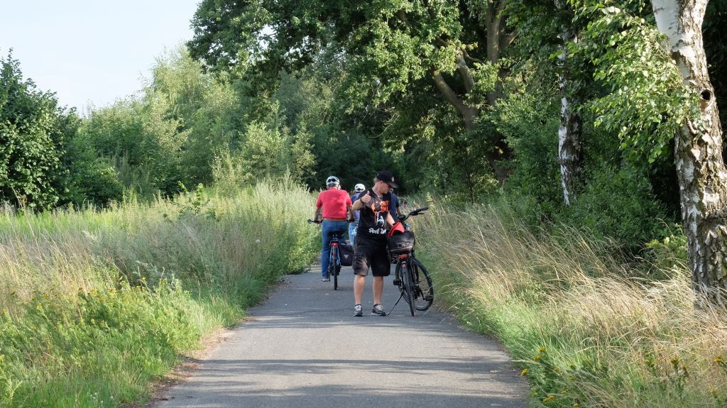 Dibbesdorf, 25.07.2025, die vierte Sommerferien-Fahrrad-Tour (SFT2025) beginnt in Dibbesdorf an der Sporthalle der SKG. Claus, der die Tour ausgearbeitet hat, gibt das Startzeichen. Skeptische Blicke gehen in den Nachmittagshimmel: wird das Wetter halten. Doch kurz darauf entwickelt sich das beste Radelwetter.