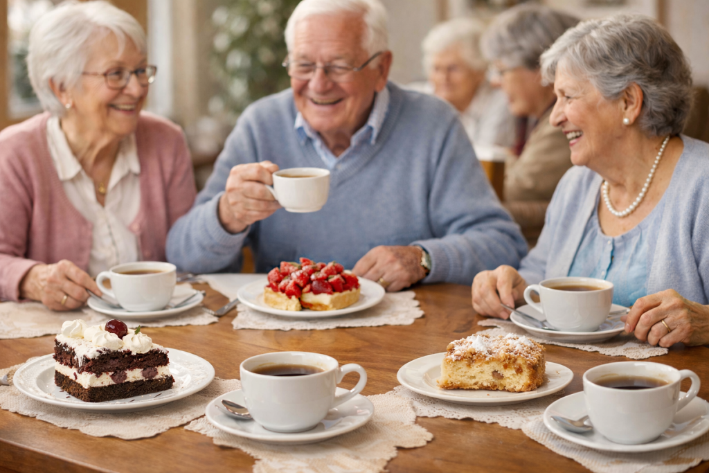Trotz schlechter Wege trafen sich 13 Damen zum ersten Kaffee-und-Kuchen-Treffen 2026. Es gab eine vorgelesene Geschichte, persönliche Jugenderinnerungen, einen kurzen Webseiten-Crashkurs – und natürlich gemeinsames Singen. Ein rundum gelungener Nachmittag!